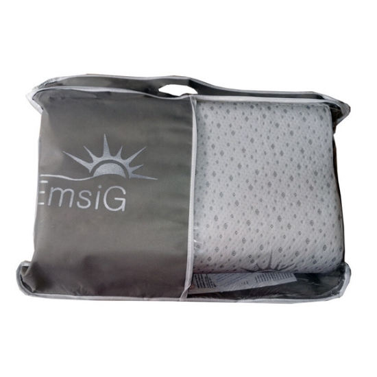 بالش طبی امسیگ مدل PL73-L از جنس مموری فوم تمپرچر امسیگ آلمان ساخته شده است و نسبت به گرمای بدن حساس است؛ به این صورت که در اثر دمای بدن شکل میگیرد. این ویژگی کمک میکند که بالش متناسب با وضعیت ستون فقرات و مهرههای هر شخصی، شکل بگیرد. این بالش همچنین دارای خاصیت شکلپذیری و برگشت به حالت اولیه است.