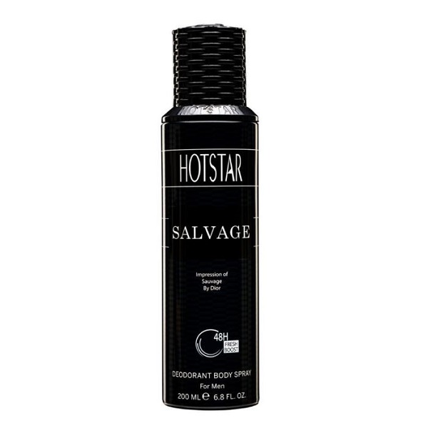 اسپری مردانه هات استار (Hotstar) مدل مدل ساواج (Salvage) فراتر از یک اسپری عمل می کند با بیش از 48 ساعت ماندگاری . اسپری هات استار Salvage رایحه ای شبیه عطر دیور ساواج-ساوج-ساواژ | Dior Sauvage دارد.