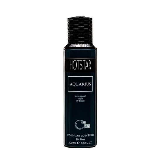اسپری مردانه هات استار مدل آکوا بولگاری (Aquarius) فراتر از یک اسپری عمل می کند با بیش از 48 ساعت ماندگاری این محصول رایحه ای شبیه عطر BVLGARI – Aqva Pour Homme بولگاری آکوا پور هوم دارد.