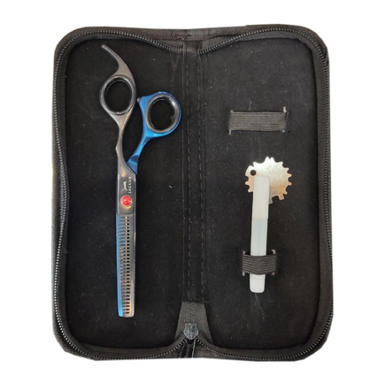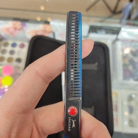 قیچی آرایشگری حرفه ای جگوار پیتاژ یکطرفه است و برای خالی کردن حجمی از موها کاربرد دارد و در فرم دهی و حالت دهی موها بسیار کارساز است. این قیچی آلمانی کاملا کبالتی و ساخت دست است. فولاد ضد زنگ جنس اصلی قیچی بوده که با پوشش نازکی از تیتانیوم همراه است. دسته قیچی دارای انحنای بسیار مناسبی است که کمترین خستگی را متوجه دست ارایشگر نخواهد کرد از نکات قابل توجهی که همیشه باید آن اهمیت داد که قیچی های حرفه ای آرایشگری به هیچ وجه نباید روی زمین افتاده شوند.