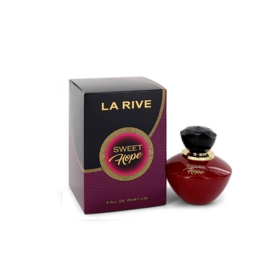 ادوپرفیوم زنانه لاریو مدل SWEET Hope از برند لا رایو La Rive با رایحه شیرین چوبی، میوهای، گلهای سفید و وانیل، عطری زنانه مناسب فصول پاییز و زمستان است.