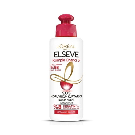 از دیگر مزیت های بارز این محصول، ویژگی محافظتی آن در مقابل استفاده از وسایل حرارتی چون سشوار و اتوی مو می باشد. کرم مو Loreal Komple Onarici5 از سری محصولات Elseve لورآل پاریس بوده که فیبر مو را ترمیم و بازسازی کرده و ساختار مو را عمیقا تقویت می کند. آسیب دیدگی، خشکی، سختی، موخوره و شکنندگی از جمله 5 عامل اصلی سایش روزانه هستند که با استفاده از این محصول کنترل می شوند. به لطف کراتین در ترکیبات این محصول موهای آسیب دیده درمان شده و ظاهری درخشان، صاف و شاداب خواهند داشت.