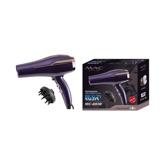 سشوار مک استایلر مدل MC 6930 یک گزینه قدرتمند و مناسب برای استفاده نیمه حرفهای و خانگی است. این سشوار دارای توان مصرفی 2600 وات و موتور نوع AC میباشد که باعث تولید باد قوی و مداوم میشود. بدنه این دستگاه از پلاستیک ABS ساخته شده است و دارای ولتاژ 220 ولت و طول سیم 1.8 متر میباشد، این مدل سشوار دارای یک سری متمرکز کننده است و از فناوری یونیزاسیون برخوردار است که به کاهش وز شدن موها کمک میکند و موها را نرم و براق نگه میدارد.