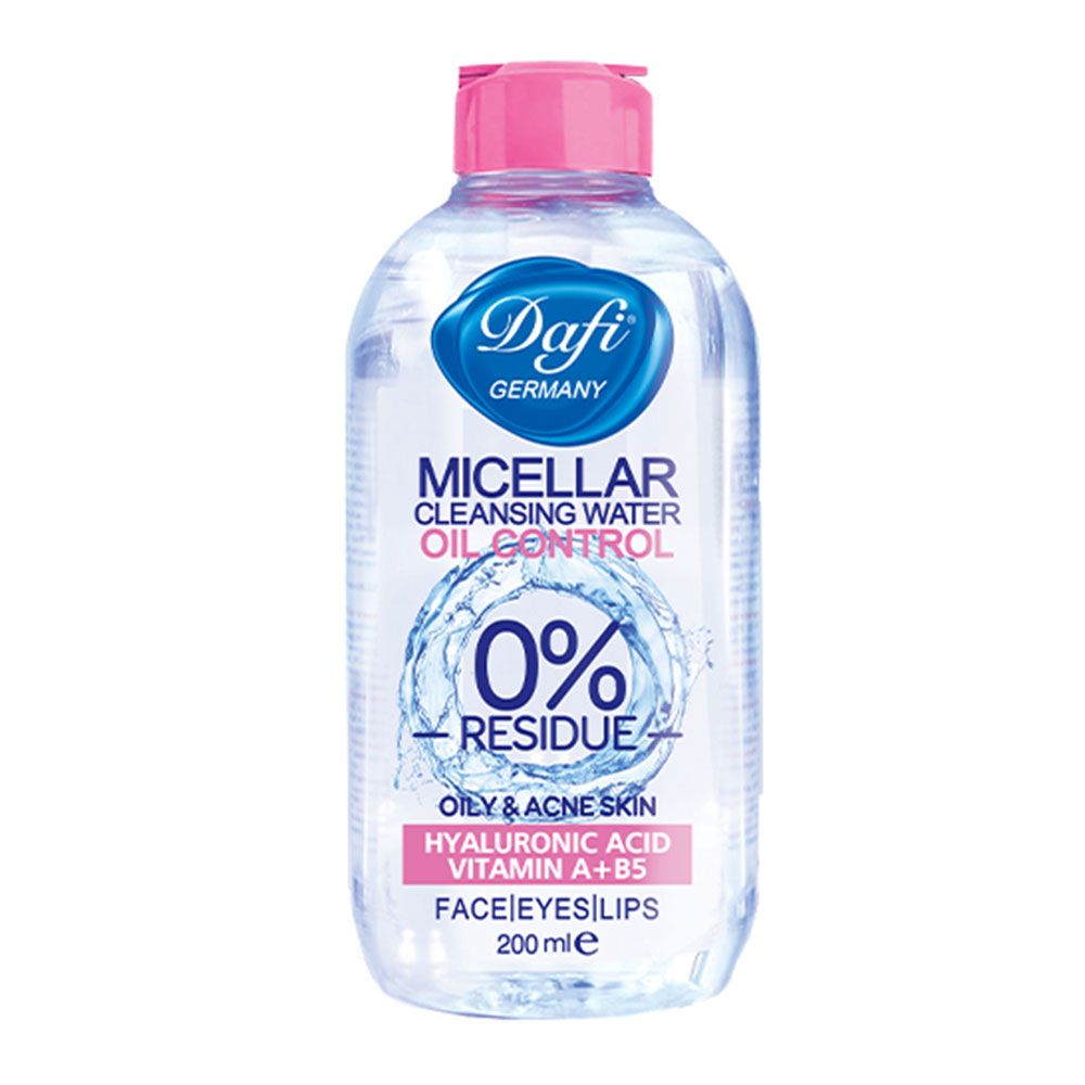 میسلار واتر مناسب پوست های چرب و آکنه دار دافی قدرت پاک کنندگی فوق العاده ای دارد و برای پاک کردن آرایش صورت، چشم و لب مناسب است. این محصول حاوی هیالورونیک اسید، ویتامین A وB5 و خاصیت آنتی اکسیدان بوده، از پیری پوست جلوگیری کرده و روی پوست ایجاد خشکی و حساسیت نمی کند.