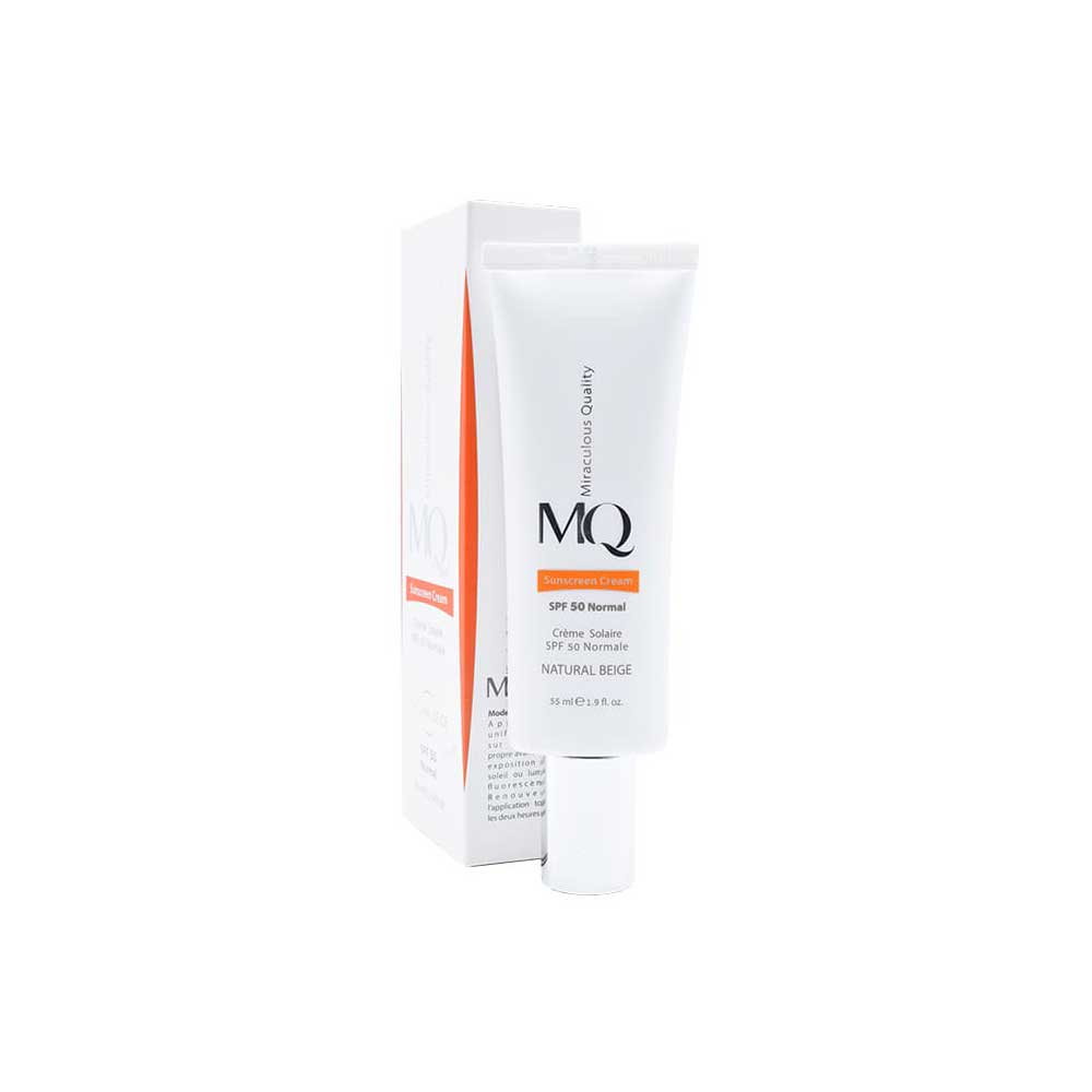 کرم ضد آفتاب ام کیو SPF50 مناسب پوست نرمال بژ طبیعی