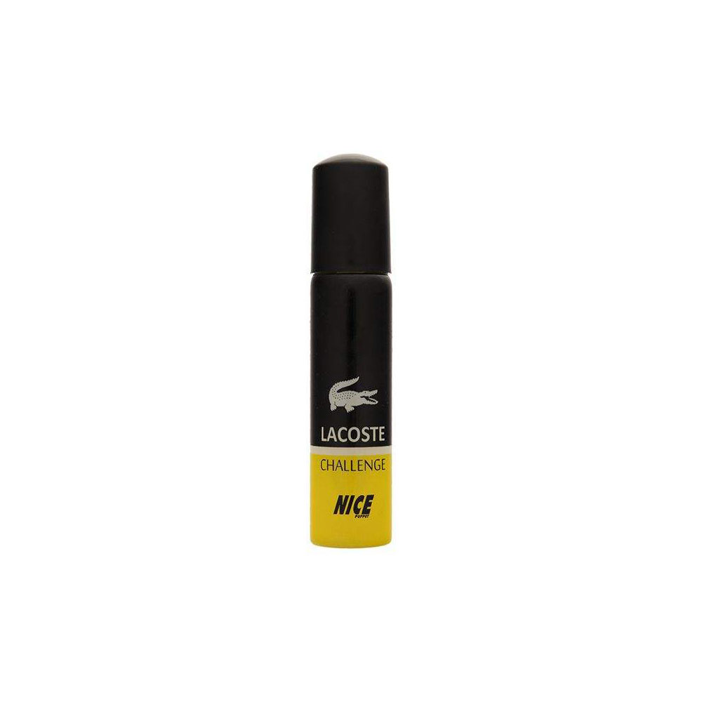 عطر جیبی مردانه نایس مدل Lacoste Challenge با دارا بودن رایحه خنک و ترش برگرفته از عطر مردانه لاکوست چلنج است که بیشترین پخش بو و دارای ماندگاری بالا در فصل بهار و تابستان دارد. این عطر جیبی از نوع ادو پرفیوم با غلظت اسانس 20 درصد است و به همین علت بین 5 الی 8 ساعت ماندگاری دارد. برند نایس پاپت با تحقیق و بررسی توانسته است رایحه عطرهای معروف را در حجم پایین و قابل حمل تولید نماید. با اسپری کردن مقداری از عطر جیبی لاکوست چلنج بر روی نبض دست و یا بدن خود ابتدا بویی از نت اولیه لیمو، پرتقال و ترنج را احساس خواهید کرد. بعد از گذشت مدت زمانی این بو تغییر کرده و جای خود را به نت میانی زنجبیل، برگ بنفشه، اسطوخودوس خواهد داد. در پایان نیز میتوان بویی از چوب ساج و درخت آبنوس را استشمام نمود.