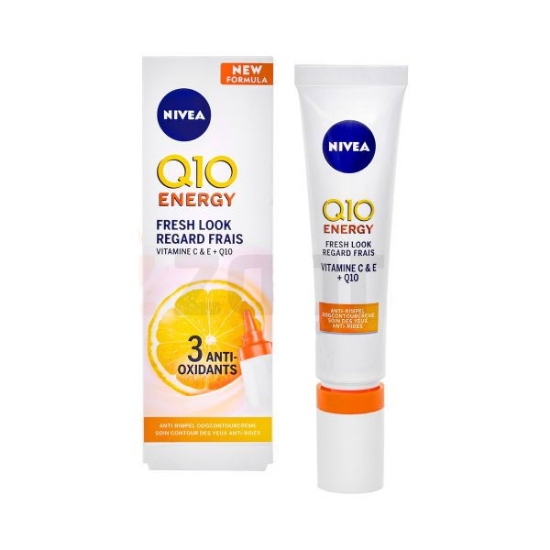 کرم ضد چروک دور چشم نیوآ Q10 Energy حاوی ویتامین E و C، دارای محتویات مغذی و ترکیبات تقویت کننده، چروک پوست دور چشم را کاهش داده و به مرور زمان موجب صاف و نرم شدن آن میشود.