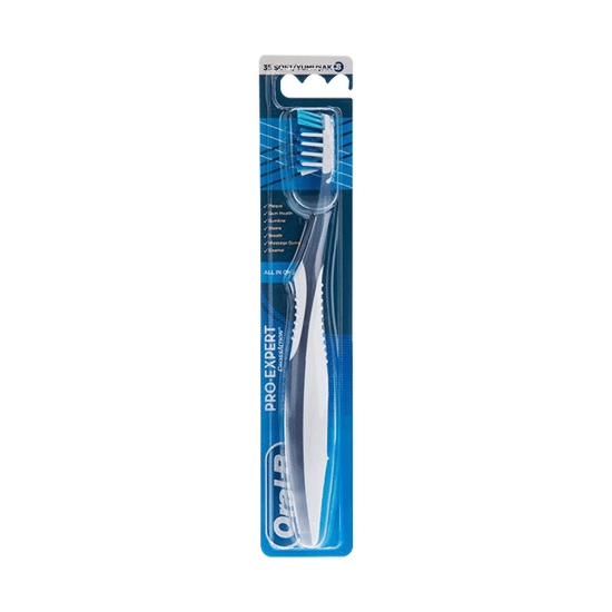 مسواک پرو اکسپرت همه کاره اورال بی با فرچه متوسط تا ۹۰% پلاک ها را از نقاط دور از دسترس دهان بر می دارد و التهاب لثه را پس از ۴ تا ۶ هفته استفاده منظم کاهش می دهد.