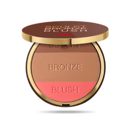 این پالت ها اکثر نیازهای آرایشی روزانه را برآورده می کنند و علاوه بر آن با مانور دادن روی رنگ های مختلف ظاهر چهره شما را تغییر می دهند. برجسته کردن گونه ها، فرم دادن به استخوان فک، باریکتر به نظر رسیدن بینی، حجیم به نظر رسیدن لب ها و همه اینها با کمک یک پالت هایلایت و برنزه شدن امکان پذیر است. پالت رژگونه برنزر 3 در 1 پوپا برای فرم دهی وبرنزه کردن و همچنین رژگونه کاربرد دارد رنگ اولی از سمت بالا طیف رنگی گرم و طلایی  که برای فرم دهی کاربرد دارد و رنگ میانی طیف رنگی کرم و همچنین بافتی سبک دارد که برای برنز کردن صورت کاربرد دارد  و در آخر پایینی براق بوده که برای گونه و استخوان گونه و برجسته کردن آن کاربرد دارد که مناسب رژگونه است. این  پالت 3در1محصولی خیلی مقرون به صرفه است. پالت رژگونه برنزر 3 در 1 پوپا یکی از محصوالت منحصر به فرد این برند ایتالیایی است. پالت های در دنیای لوازم آرایشی جایگاه ویژه ای دارند. شرکت پوپا در تولید پالت های کانتور، هایلایتر و برنز و بسیاری از محصولات از دیگر شرکت ها پیشی گرفته است.