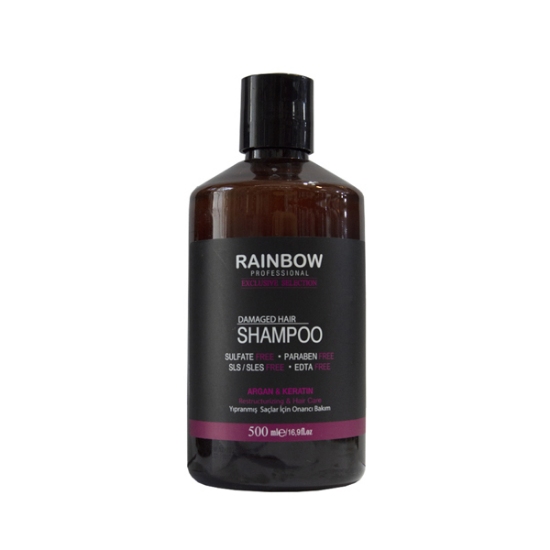 شامپو کراتین و آرگان رینبو، جهت مراقبت، درمان و شستشوی موهای رنگ شده و موهایی که تحت تاثیر مواد شیمیایی قرار گرفته اند می باشد. این محصول با فرمول بسیار ملایم، فاقد سولفات و حاوی سدیم کلراید و پارابن، موها را تمیز، تقویت و ساختار مو را از داخل بازسازی و رنگ مو را ثابت می کند، همچنین کوتیکول و پولک های مو را بسته و مانع کدری و رنگ پریدگی رنگ مو و از بین رفتن پروتئین های ساقه مو می شود. شامپو کراتین و آرگان حاوی کراتین و روغن آرگان بوده و موهای صاف شده، فر شده و موهایی که با اکسیدان و ترکیبات آن آسیب دیده اند را تقویت، نرم، احیاء و درخشان می کند