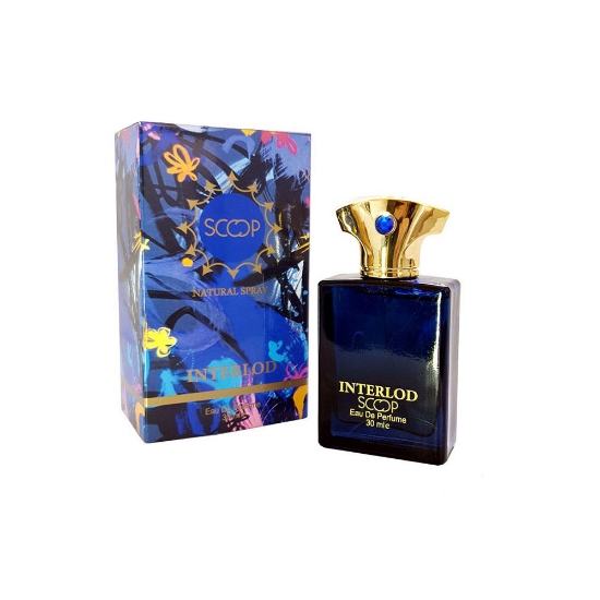 عطر جیبی آمواج اینترلود اسکوپ محصولی دیگر از کمپانی اسکوپ. عطر ادکلن آمواج اینترلود مردانه – Amouage Interlude در سال ۲۰۱۲ با طراحی پیئر نگرین توسط برند سلطنتی آمواژ طراحی و به بازار عطر و ادکلن عرضه شد.اگر با دقت به شیشه‌ی این ادو تویلت زیبا نگاه کنید، کیفیت تفاوت و لوکسی جذبتان خواهد کردنگین آبی تراش خورده روی درب که محصول سوارووسکی است زیبایی این عطر را دو چندان میکند.