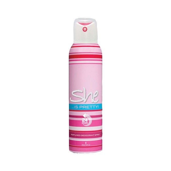 اسپری زنانه‌ی شی مدل Is Pretty با بوی شیرینش، برای تمامی فصول قابل‌استفاده است. این اسپری 150 میلی‌لیتری برای مصرف روزانه‌ی شما تا مدت زیادی پاسخگو بوده و نیازی به خرید اسپری جدید نخواهید داشت.