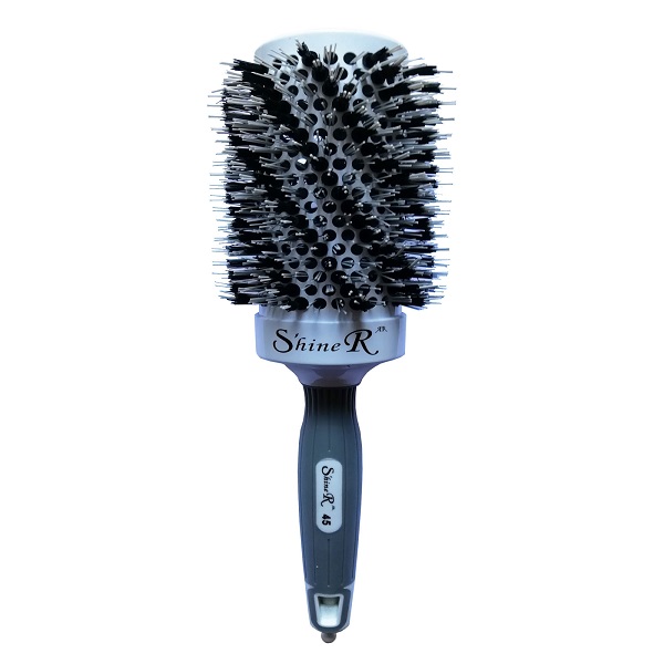 بعلاوه دارای دسته با قابلیت ماساژ می باشد . این برس دارای ویژگی براق کننده مو (با استفاده از تکنولوژی یونی) بوده . این برس در مقابل حرارت و ضربه مقاوم می باشد. برس گرد سرامیکی شاینر دارای میخ مقسم برای جداسازی مو می باشد.