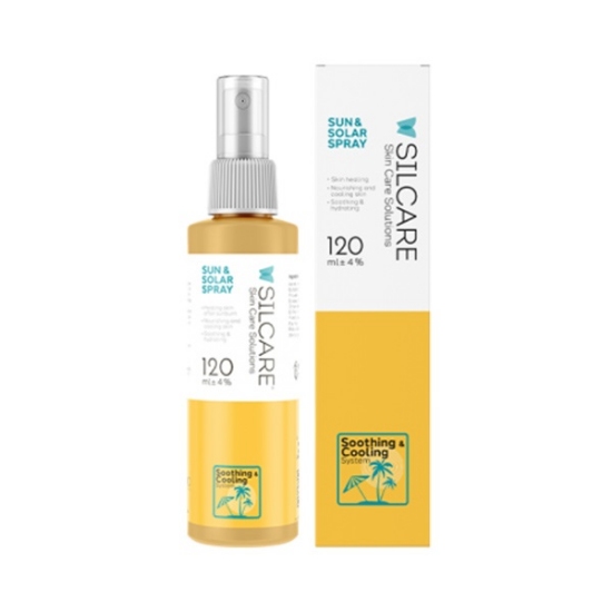 اسپری آفتاب و سولار سیلکر، خاصیت ضد التهابی و مرطوب کنندگی عمیق دارد که در کاهش قرمزی پوست و تسکین آن بعد از انواع سوختگی و التهاب (مانند بعد از لیزر) بسیار موثر است. این فرآورده مغذی، نرم و خنک کننده سریع پوست قابل استفاده برای هر نوع التهاب و سوختگی و قابل استفاده برای تمام نواحی پوست به غیر از چشم و اطراف چشم است. پس از استفاده از آن پوست دچار هیچ گونه آسیب، جوش و آکنه نمیشود.