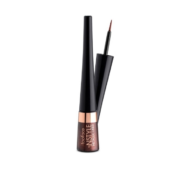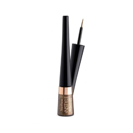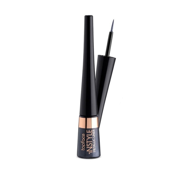 خط چشم متالیک رنگی تاپ فیس، خط چشم رنگی و براق است و درخشندگی مانند فلز دارد، به همین علت به این مدل متالیکی میگوند. خط چشم براق تاپ فیس حاوی ویتامین E است که رطوبت مژه ها را حفظ میکند. این خط چشم پخش شدگی ندارد و بطور یکدست پشت پلک باقی میماند. همچنین خط چشم براق تاپ فیس ماندگاری خوبی داشته و تمام روز بر روی پلک باقی میماند. با این خط چشم میتوانید یک خط چشم یکدست بکشید.