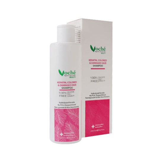 شامپو کراتینه وچه دارای فرمولاسیون اختصاصی جهت حفظ رنگ و کاهش اثرات مخرب دکلره و رنگ مو است. کراتین موجود در این محصول سبب آبرسانی عمیق و موثر مو میشود. این شامپو حاوی بیوتین، ویتامینهای A،E و B۵ است که سبب کاهش ریزش مو و تقویت فولیکول آن شده و از طریق فیلتر UV و عصاره انار به تثبیت رنگ مو با کاهش اثرات نور خورشید بر روی موهای رنگ شده میپردازد. این محصول فاقد مواد مضر سولفات، نمک، پارابن، سیلیکون، گلوتن، پروپیلن گلیکول و دایمتیکون است. شامپوهای فاقد سولفات شویندگی بهتر و کف کمتری دارند.
